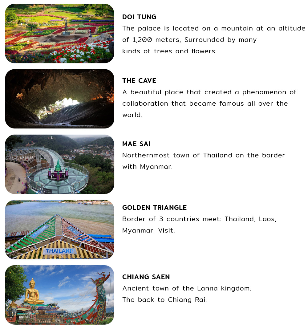 09:45 AM - Doi Tung Phra That Doi Tung was built in the reign of King Achuttarat. The king who ruled the city of Yonaka Nakphan (Currently Mae Chan District) Phra Maha Kassapa brought the relics of the Buddha with the left Rakkwan part. (Collarbone) and then gave it to King Achuttaratj to build a pagoda containing the relics of the Buddha on the mountain.